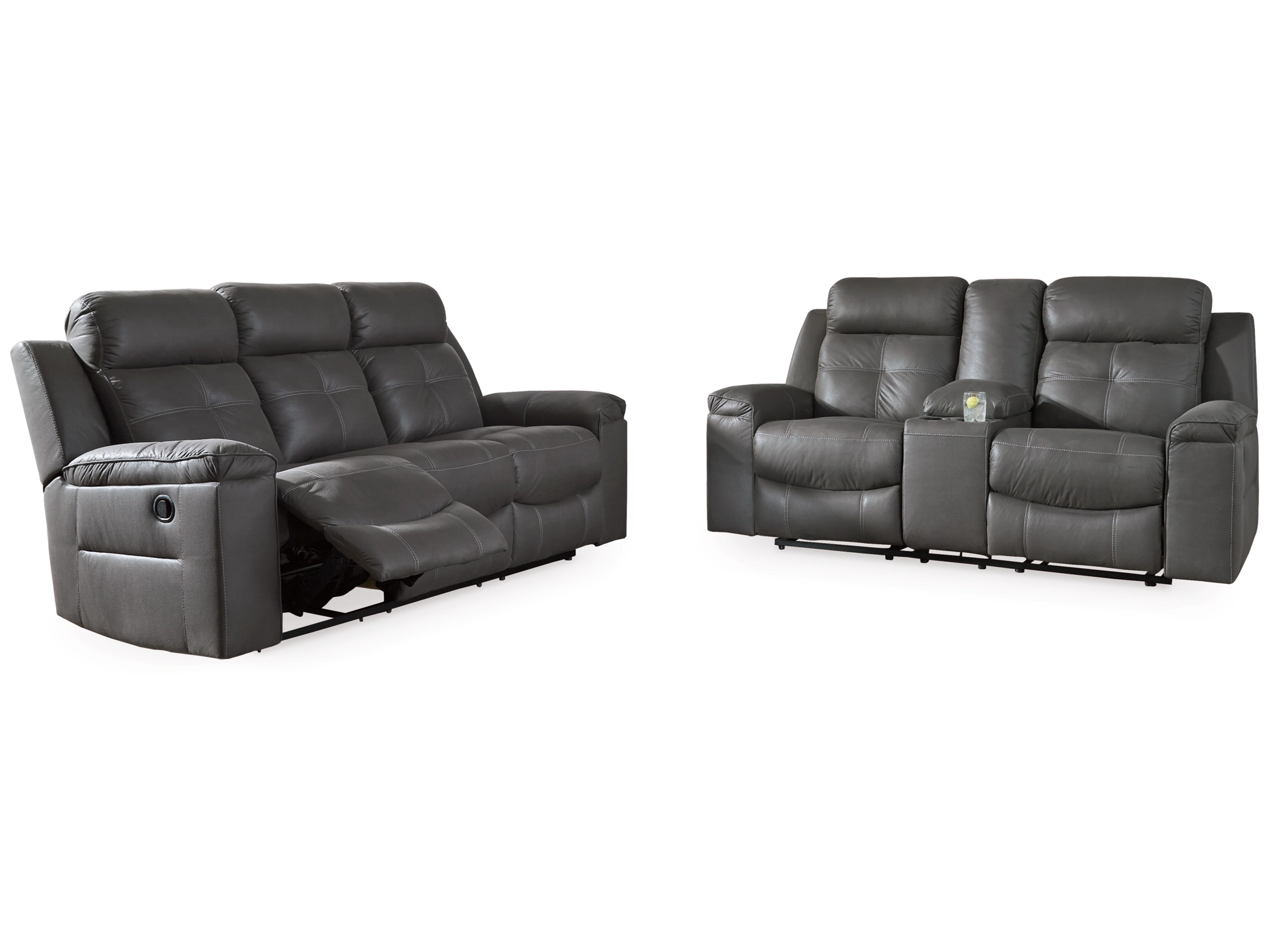 Rustic character comes forth in the Jesolo reclining sofa and loveseat set. Designer stitching adds a fashion-forward touch to its soft cushions. Faux suede fabric speaks to your knack for superior-quality materials. The high backs provide ample support as you get off your feet for a bit. And with a simple pull of the tab, you’ll be easing back into relaxation. Infinite levels of comfort await.